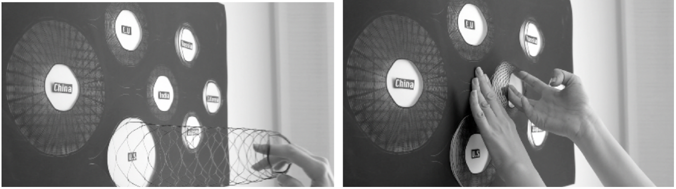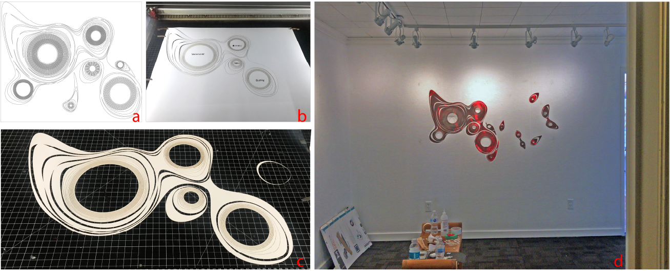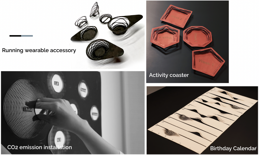 In her PhD thesis, Foroozan Daneshzand introduced and investigated the KiriPhys technique to physicalize objects using paper-cutting techniques. Through a series of projects, we could then use this technique to investigate design processes for creating data physicalizations and artwork, to empirically characterize the data physicalization authoring process, and to identify and explore the role of feedforward in data physicalization authoring tools.