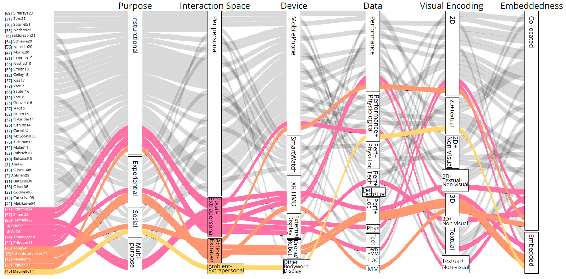 The design space of in-situ running visualizations based on our scoping survey of 47 papers
