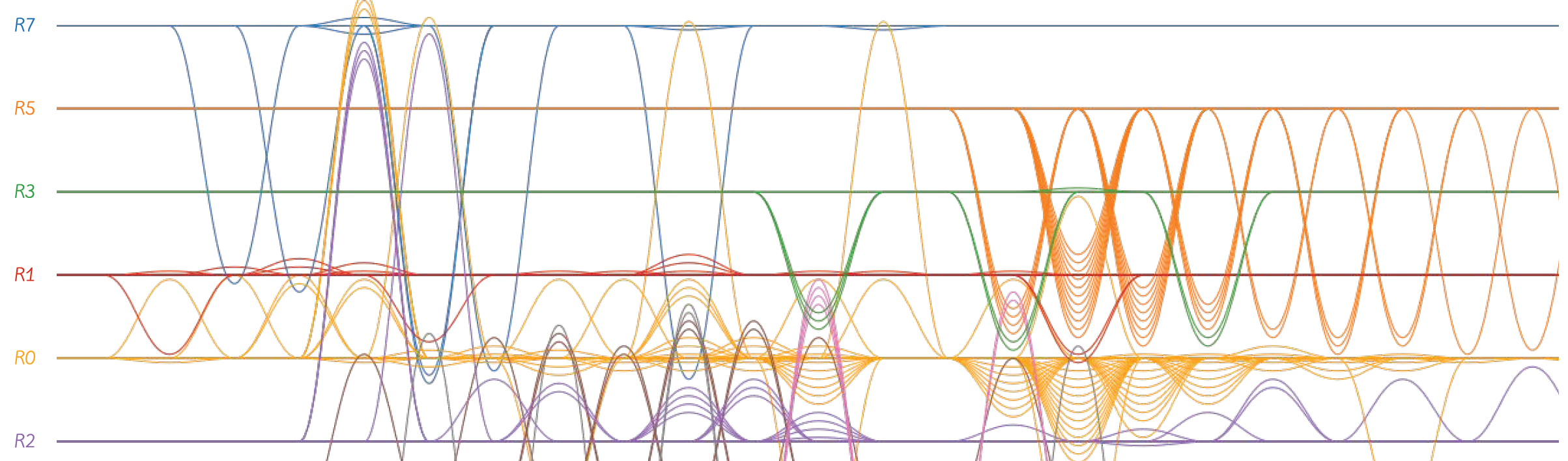 We present a timeline-based visualization for exploring temporal collaboration patterns among academic authors. Inspired by the metaphors of weaving threads and ripple waves, our technique represents each author as a colored baseline and uses curved connectors to show co-authorship events over time.